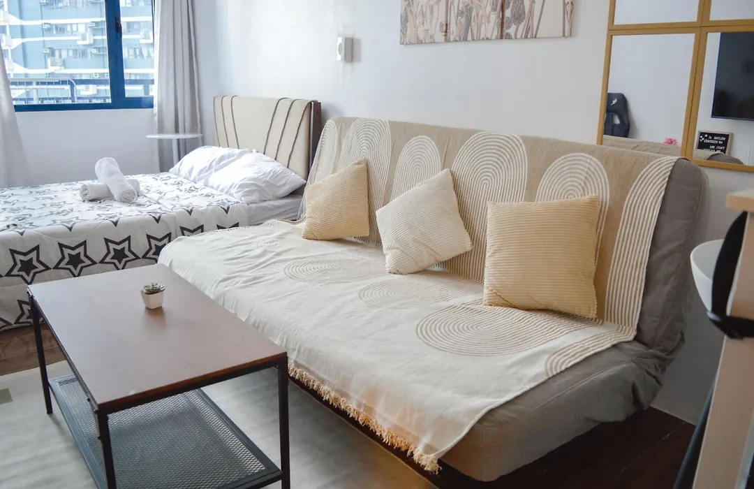 ベッドルーム1室のAir Residences マニラ市はテラスがあり、B-Sideから徒歩で5分以内に位置しています。 この26m²のアパートではWi-Fiを利用できますし、車でお越しのお客様のために駐車場もあります。